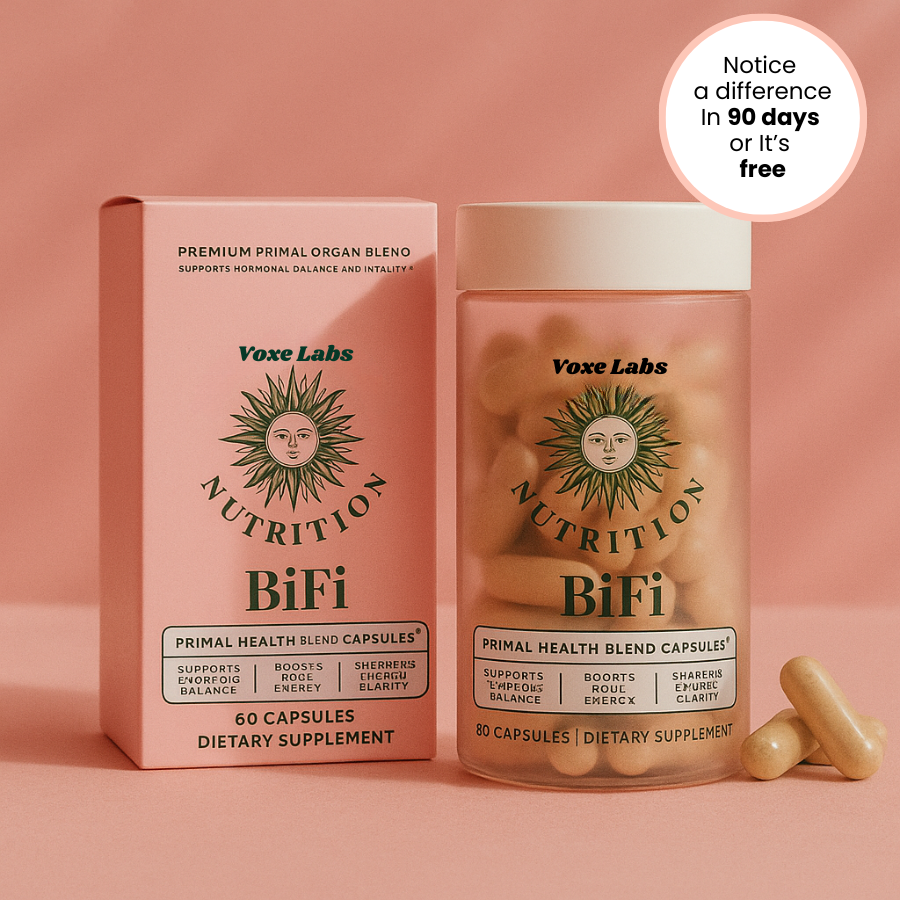 Reclaim balance, energy, and focus with Voxe Labs Primal Health Blend Capsules—powered by premium bovine organ extracts for modern women seeking ancestral strength.